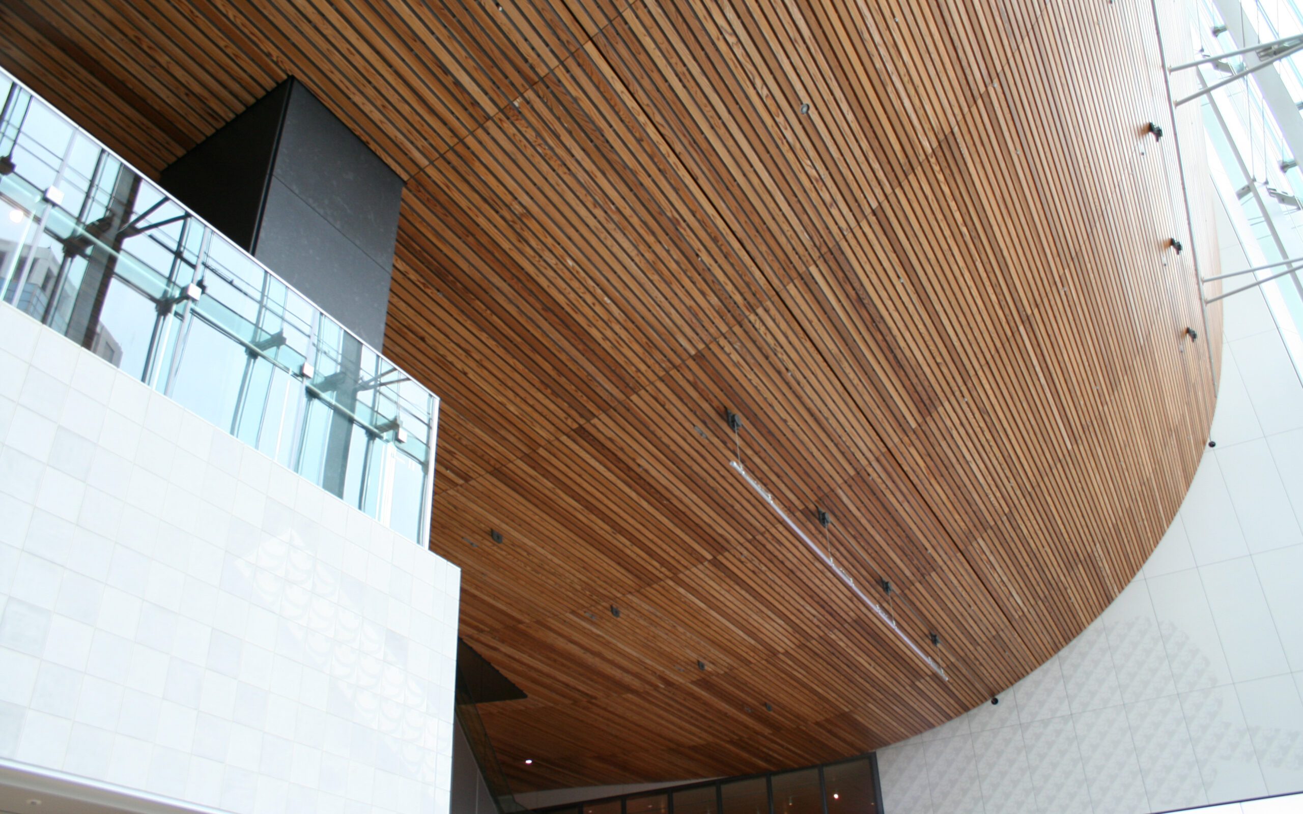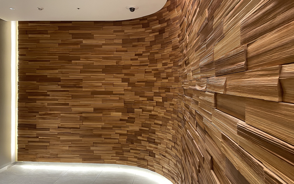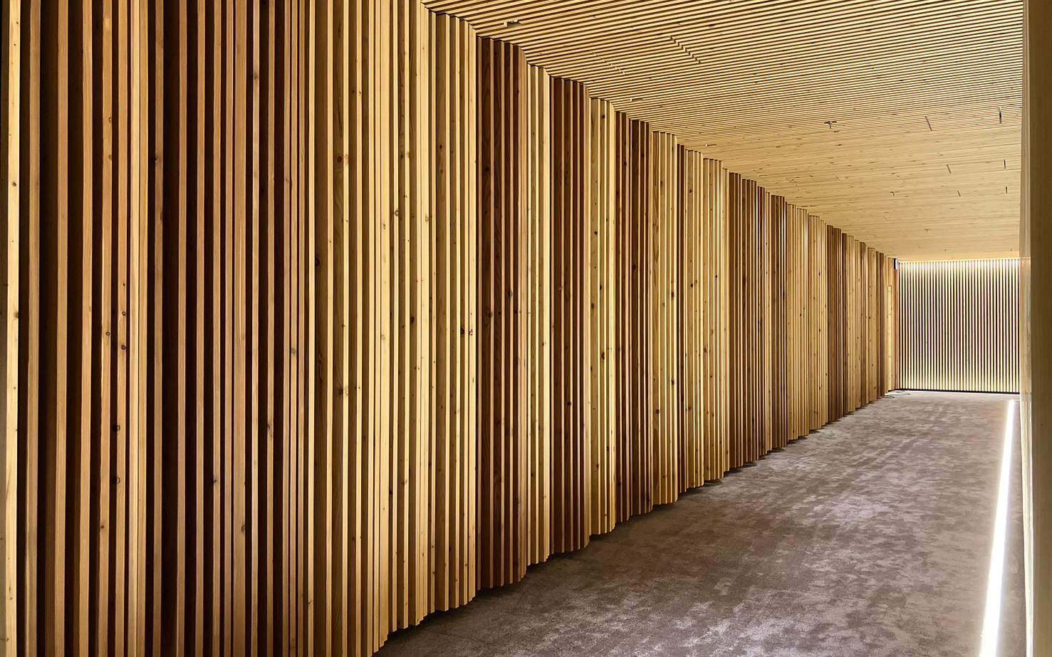 This approach allows natural wood to be used as a design element in buildings that require strict fire safety standards.